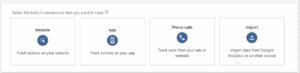 • Choose what kind of conversions you want to track (website, app, phone call, or import).