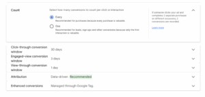 • Set your click-through conversion window (e.g., 30 days or longer for high-consideration products).